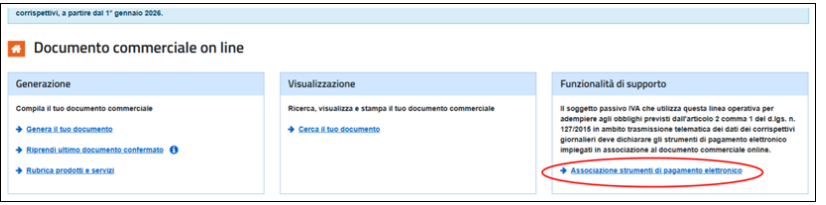 d) Clicca il link "Associazione strumenti di pagamento elettronico" del riquadro "Funzionalità di supporto".